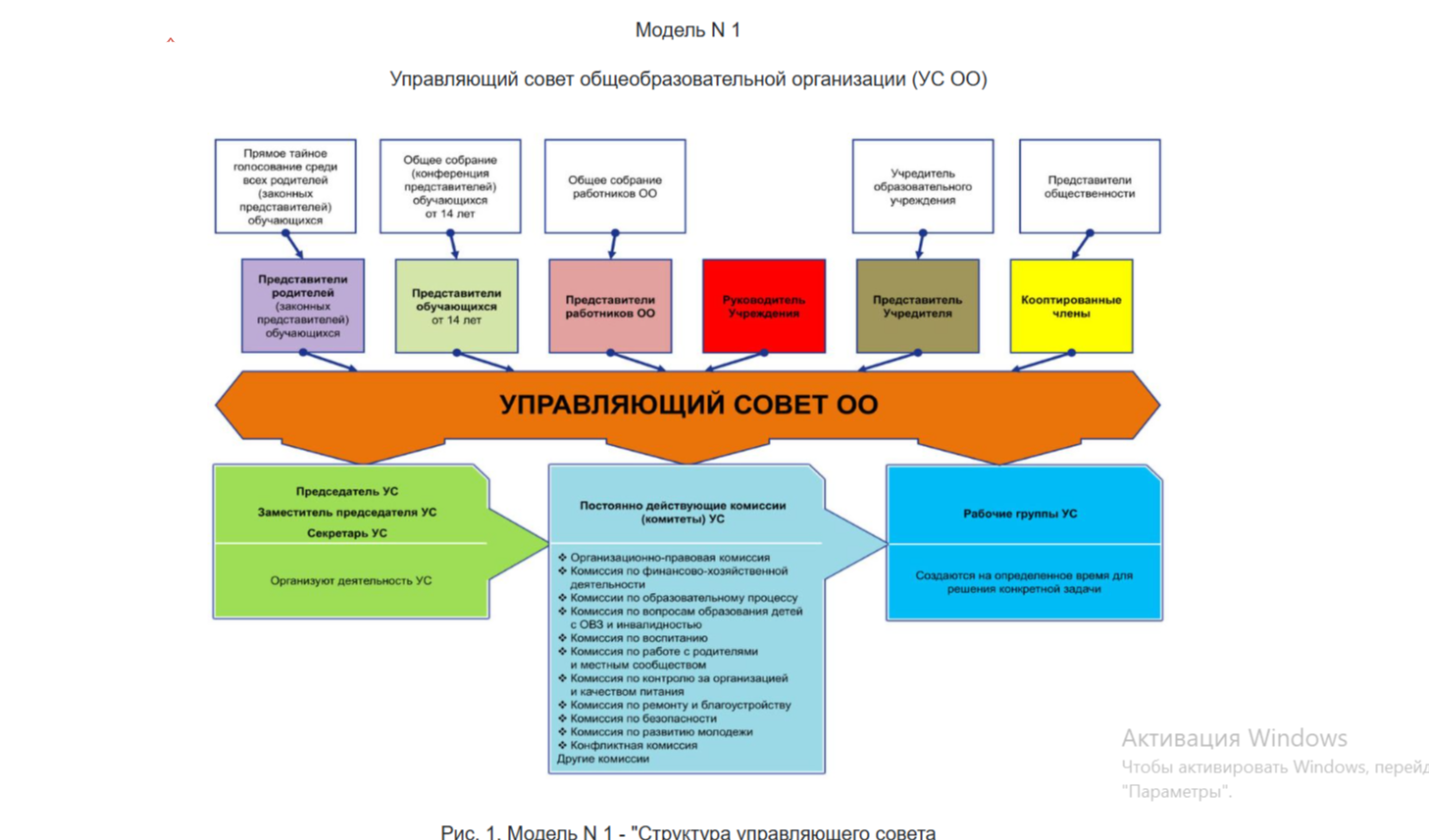 - Структура управляющего совета - с указанием наименования всех действующих комиссий и рабочих групп управляющего совета;